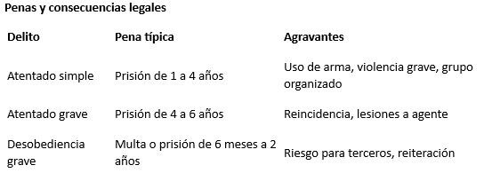 Elementos jurídico-penales del atentado y la desobediencia grave